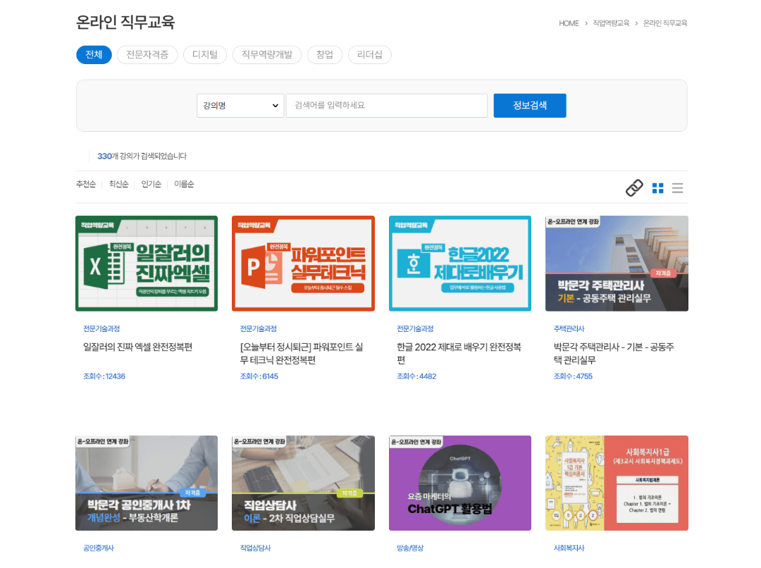 - 직업 역량 강화 강의 212개
